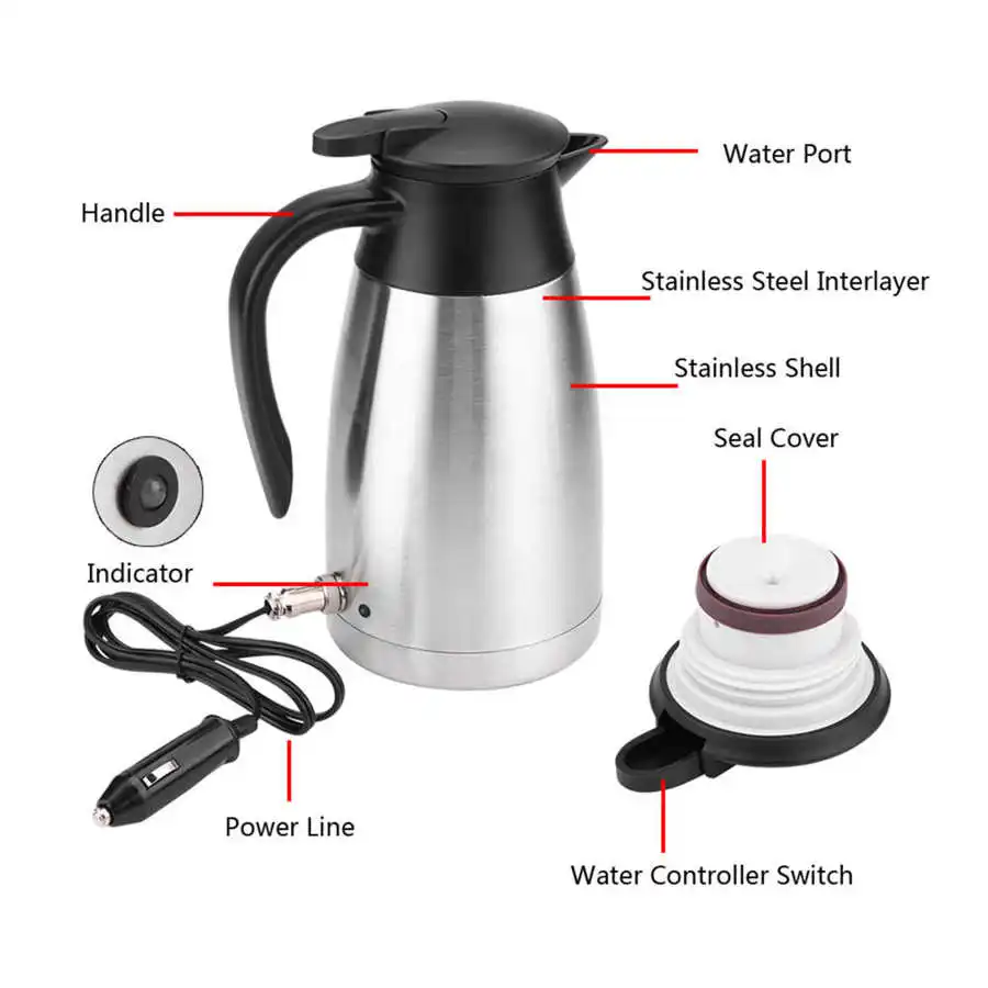 Отзывы о 1000 мл 12 В/24 В автомобильный нагревательный стакан чайник из нержавеющей стали для