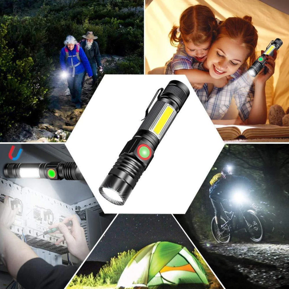 USB Перезаряжаемый фонарик супер яркий Магнитный светодиодный фонарь 90000LM с Cob Sidelight Карманный водонепроницаемый зажим, масштабируемый лучший фонарик для кемпинга
