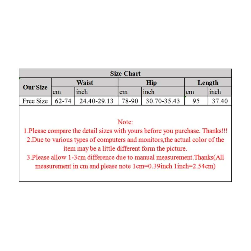 Размер: один размер Талия: 62-74 см (24,4-29,13 дюйма) бедра: 78-90 см (30,7-35,43 дюйма) Длина: 95 см (37,4 дюйма)