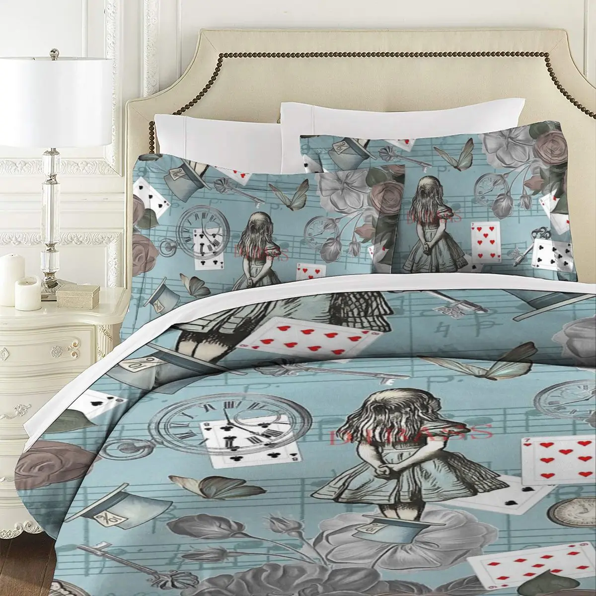 Отзывы о Коллаж Алиса в стране чудес-винтажный синий мягкий фоточехол с 2 наволочками