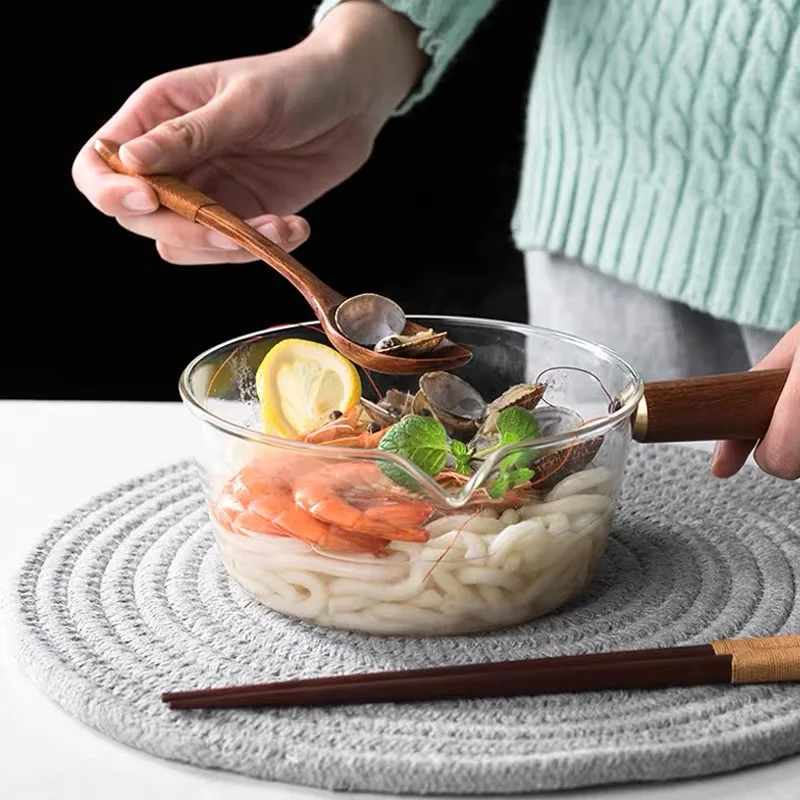 Стеклянная сковорода для соуса с деревянной ручкой, кастрюля для молока, кухонная посуда, кастрюля для салата, лапши, супа, кастрюли и сковородки, газовая плита, электрические керамические нагреватели, японская кухонная посуда, кастрюля