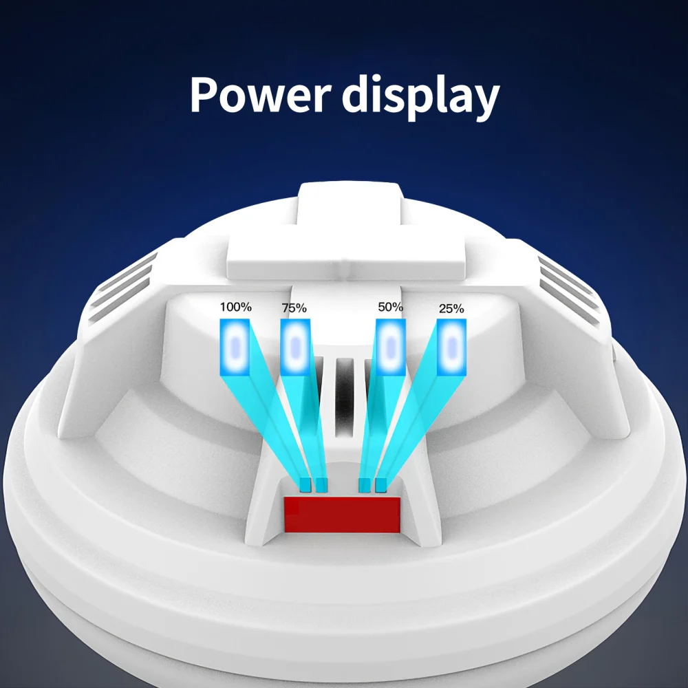 Четыре уровня мощности (25 процентов, 50 процентов, 75 процентов, 100 процентов) отображаются индикаторным светильник, что позволяет видеть оставшуюся мощность с первого взгляда,