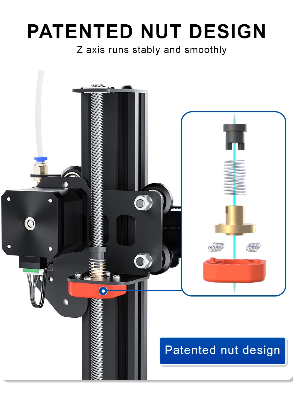 3.Запатентованная конструкция гайки:Ось Z работает стабильно и плавно