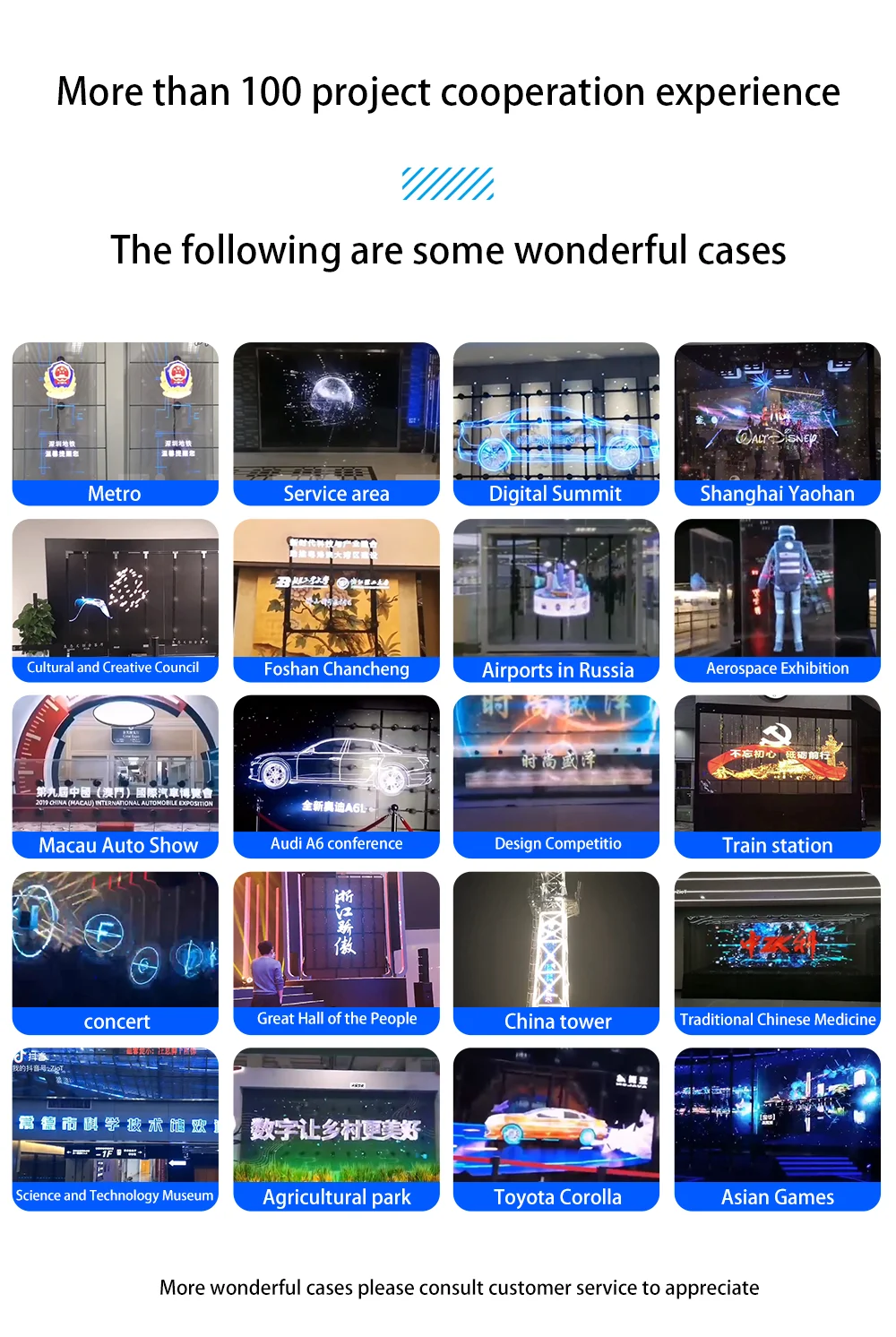 2. Ультра-высокая плотность 512 светодиодный вращающийся визуальный эффект, показывающий 3D визуальные эффекты невооруженным глазом высокой четкости. Физическое разрешение достигает 512*512. Он поддерживает популярные форматы видео, анимацию и 3D текстовое изображение.