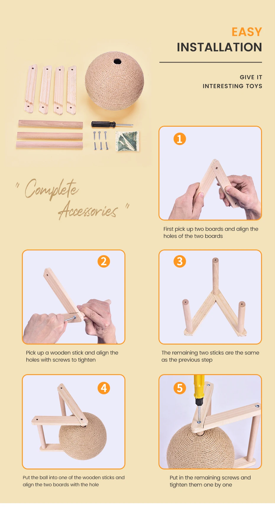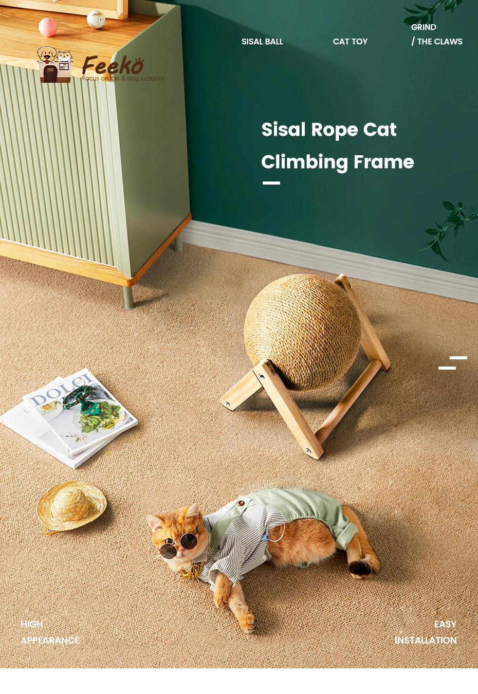 Безопасно: основание треугольной рамы предназначено для поддержки шарика сизаля, который трудно налить, так что кошки не могут быть повреждены и безопаснее при игре в эту игрушку.