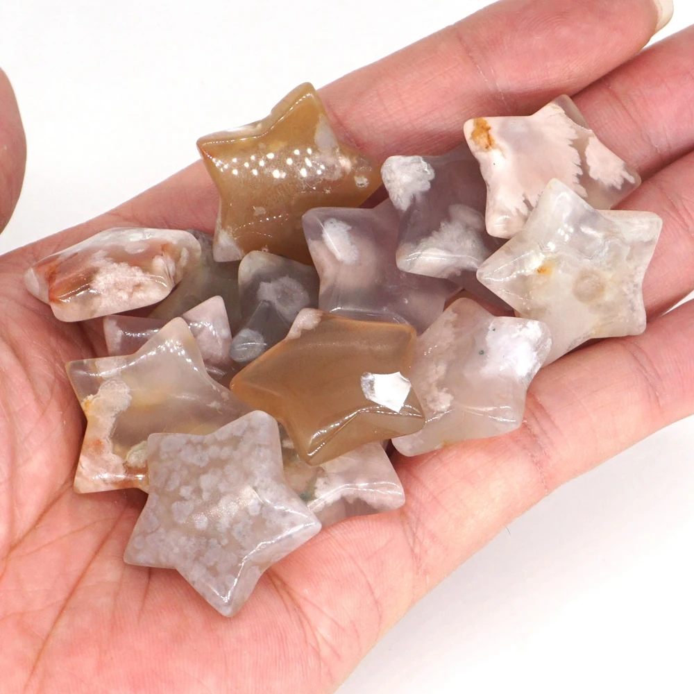 25 мм в форме звезды, натуральный драгоценный камень, цветок, агат, кристалл, полированный, рейки, исцеление, талисман, украшение для дома, подарок для создания украшений