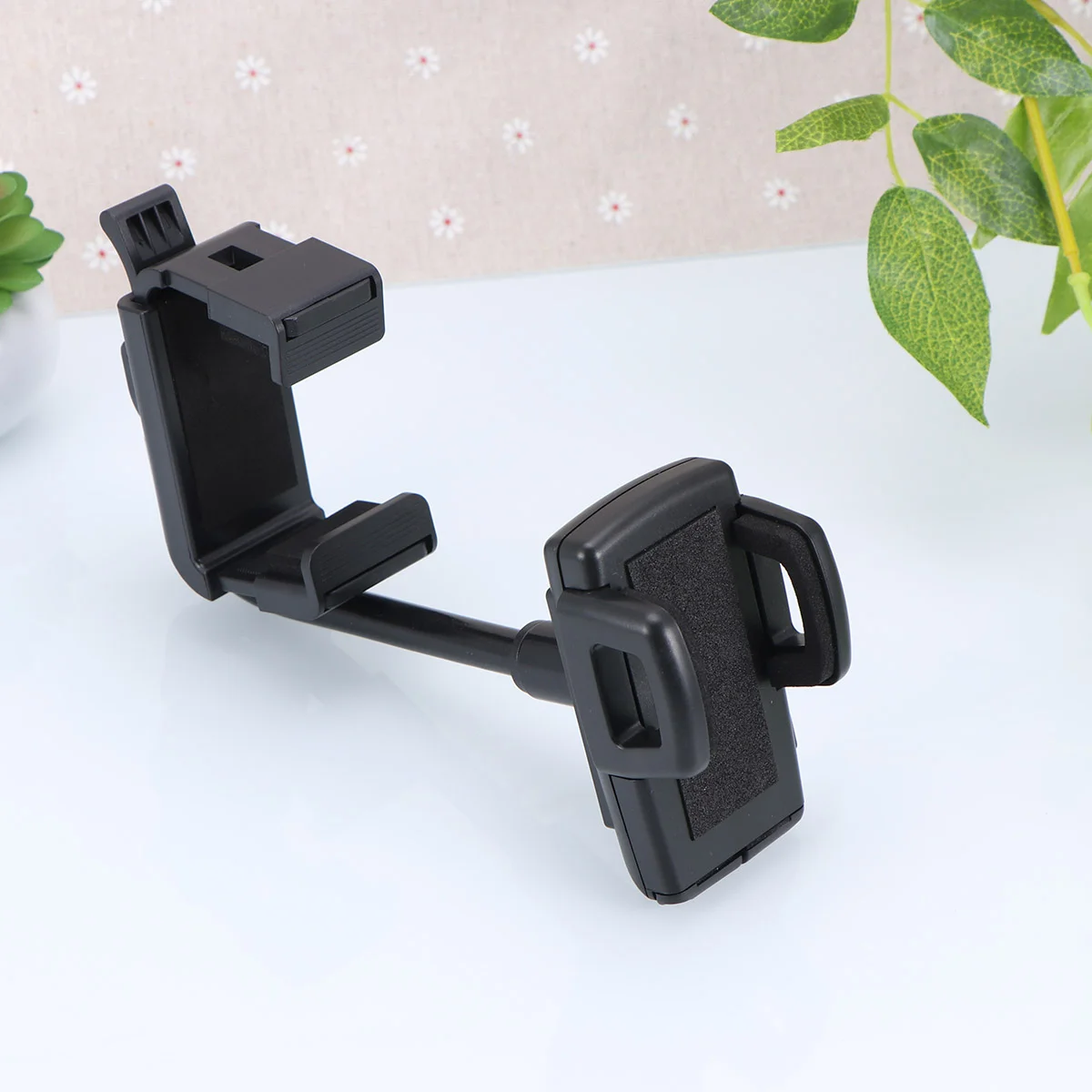 Изготовленный из высококачественного материала, этот автомобильный зеркальный держатель для телефона специально разработан для долговечности и долговечности. Благодаря своей прочной конструкции и конструкции этот держатель телефона может эффективно избежать вибрации и обеспечит стабильную среду для просмотра вашего телефона или другого устройства. Этот автомобильный аксессуар позволит вам без использования рук просматривать и звонить во время вождения, что очень удобно и практично в использовании.     Особенности   -Цвет: черный. -Материал: АБС-пластик.