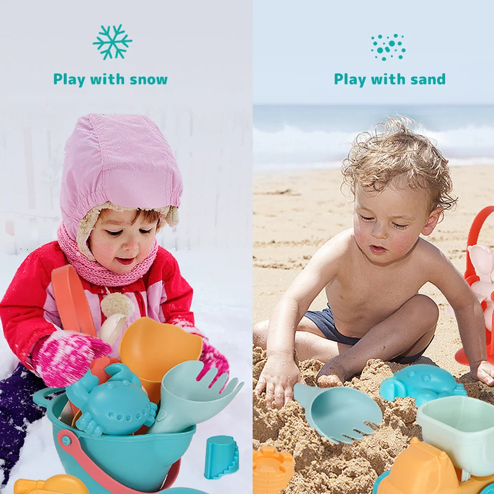 4. Безопасно играть с:Строительный набор песочницы изготовлен из надежного пластикового материала с гладкими краями, который легко сжимается, не повреждая руки, вы можете использовать его.
