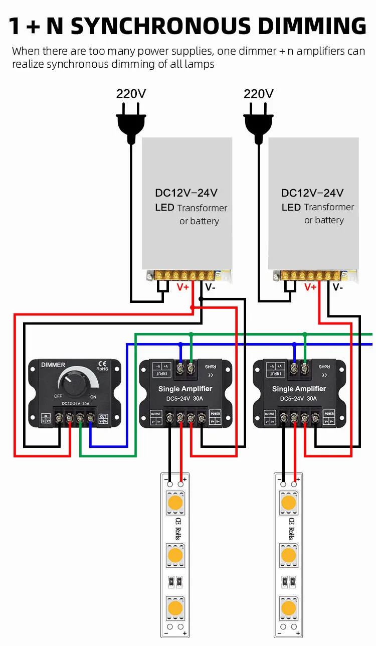 It is mainly used to adjust the single color LED lighting lamp / light bar. The single color 5050 3528 light bar. LED lamps not suitable for multi-color mixing (such as RGB lamp strip / lamp, table lamp, fan, energy-saving lamp, bulb, etc.)