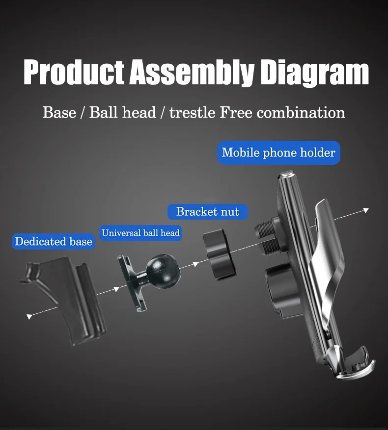 【Беспроводное быстрое автомобильное зарядное устройство 】вы можете безопасно установить этот держатель телефона на местоположение автомобиля, чтобы завершить установку за считанные секунды, без каких-либо инструментов.