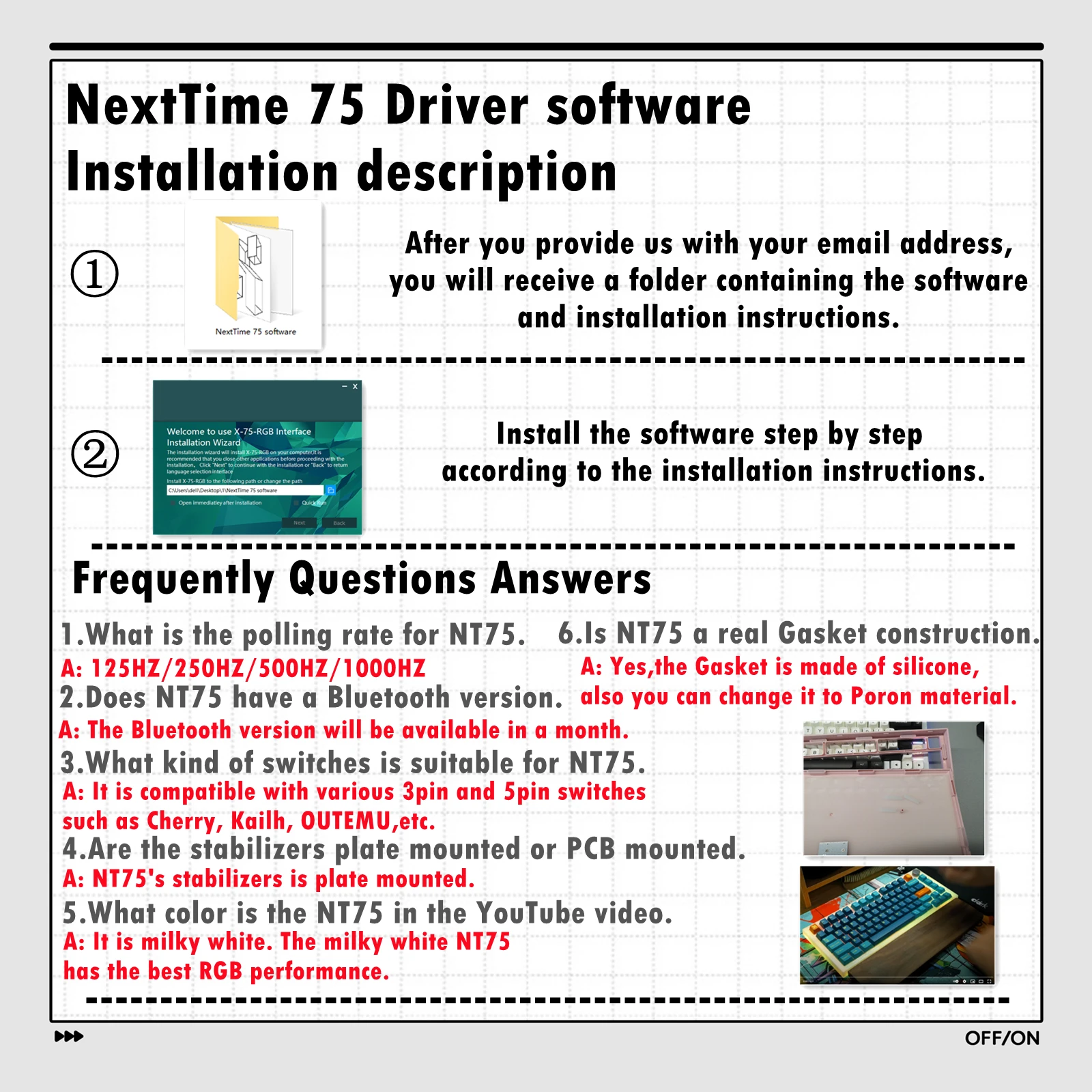 Как только вы получили клавиатуру и закончили ее создание, пожалуйста, сделайте несколько приятных фотографий вашего уникального NT75 и поместите их в отзывы клиентов, мы произвольно выберем несколько очаровательных творений и отправим им специальный подарок.