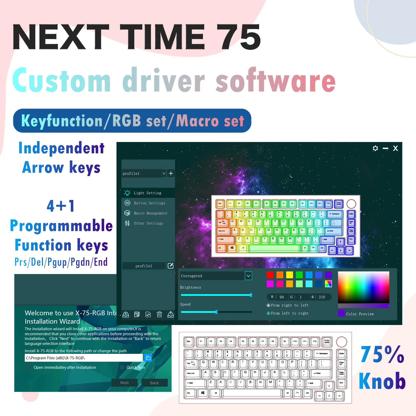 Отзывы о Набор для клавиатуры NextTime 75 Hot Swap 82 клавиши RGB-подсветка проводные 3Pin/5Pin