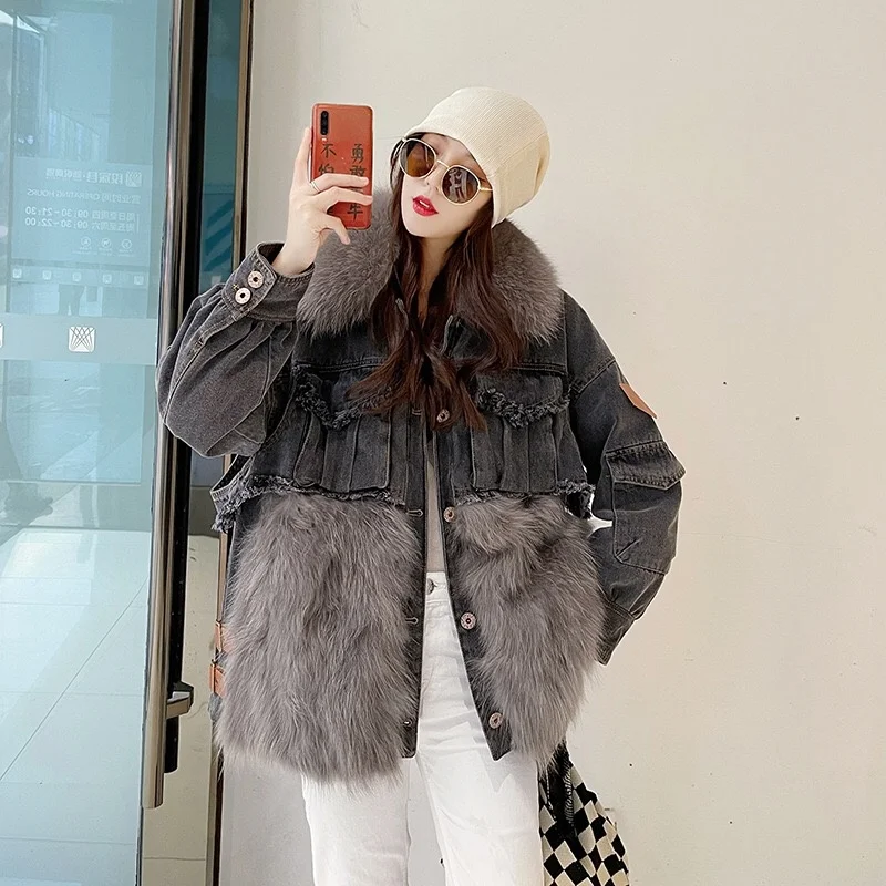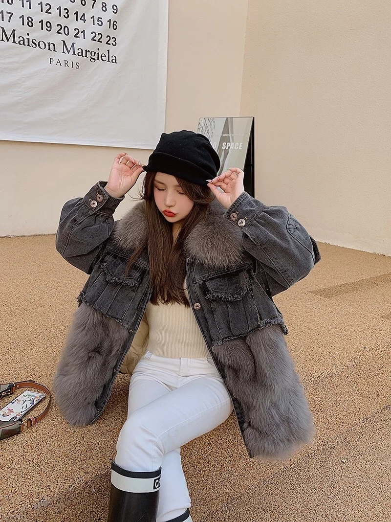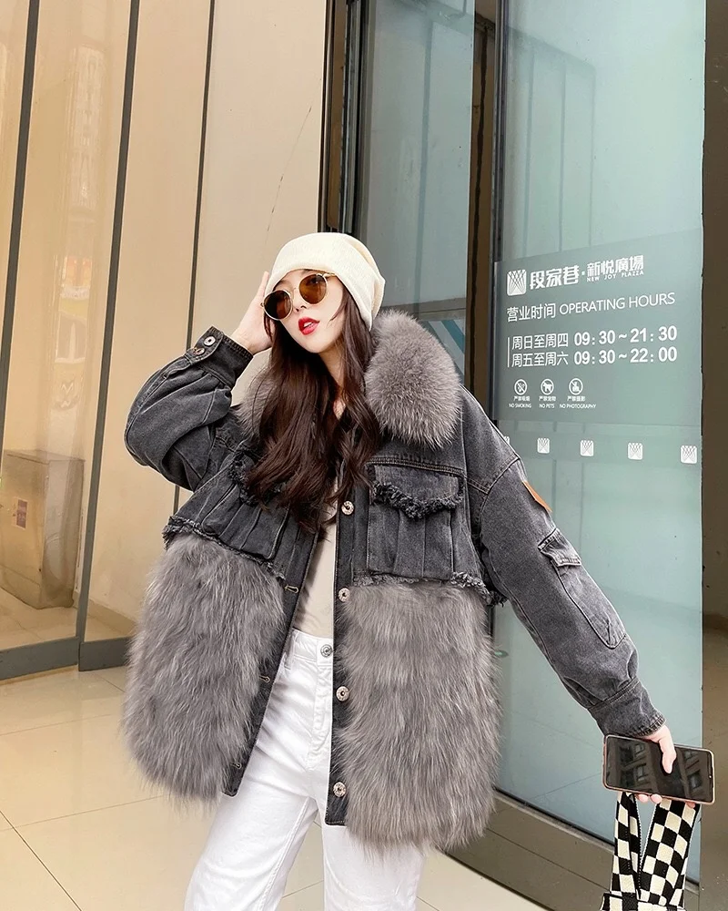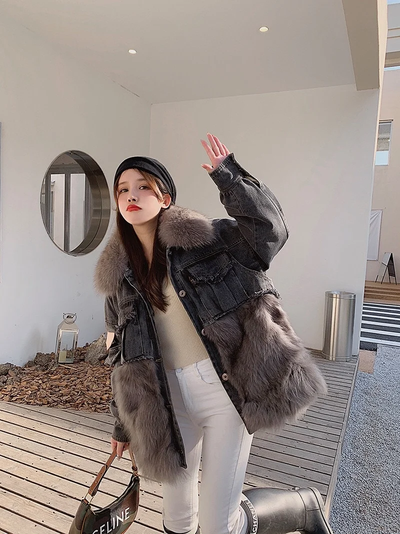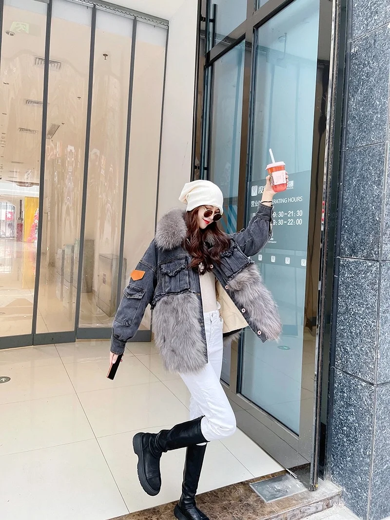 Отзывы о 2021 зимняя серая джинсовая куртка с отворотами и шитьем из искусственного меха
