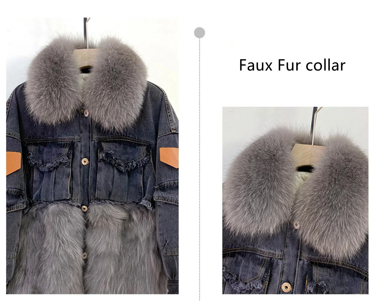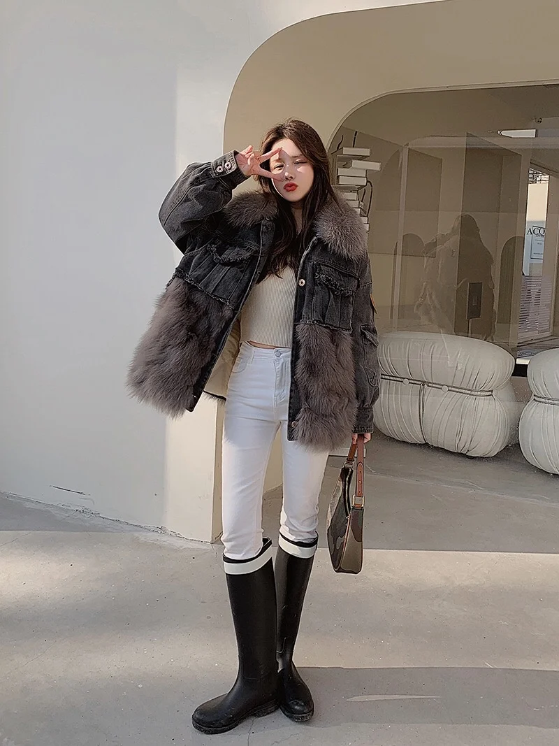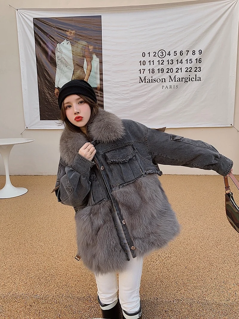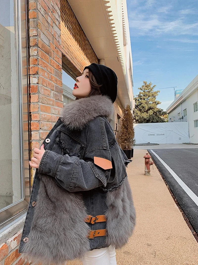 Отзывы о 2021 зимняя серая джинсовая куртка с отворотами и шитьем из искусственного меха