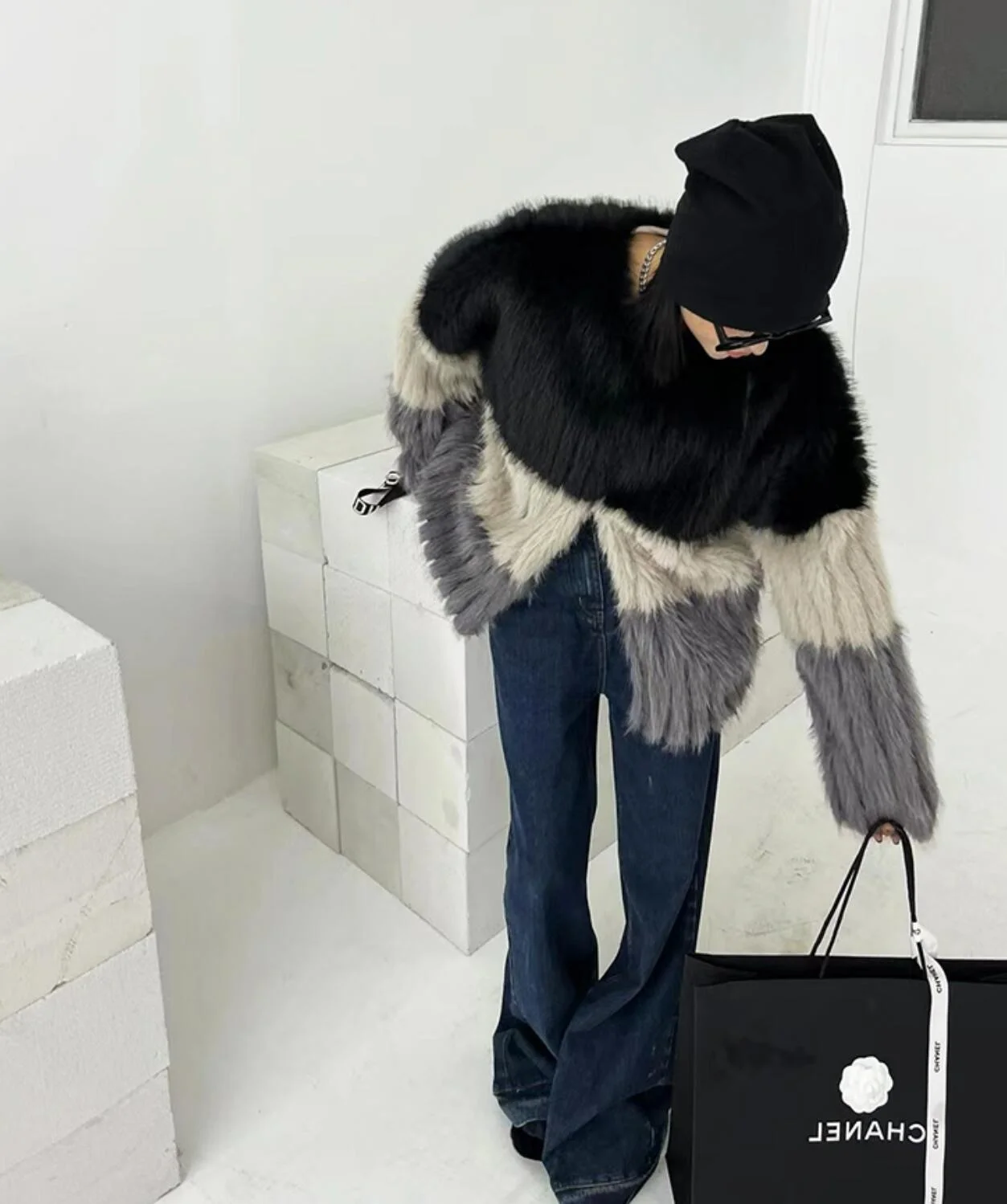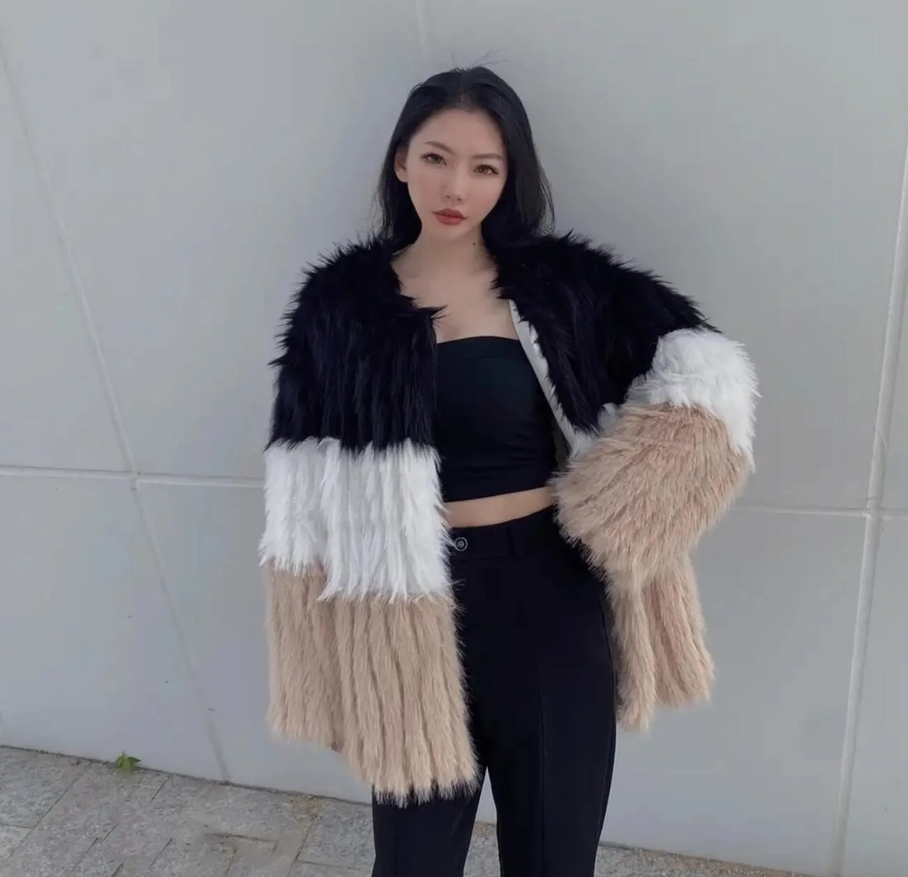 Отзывы о Женская Шуба в полоску свободная теплая шуба контрастных цветов из