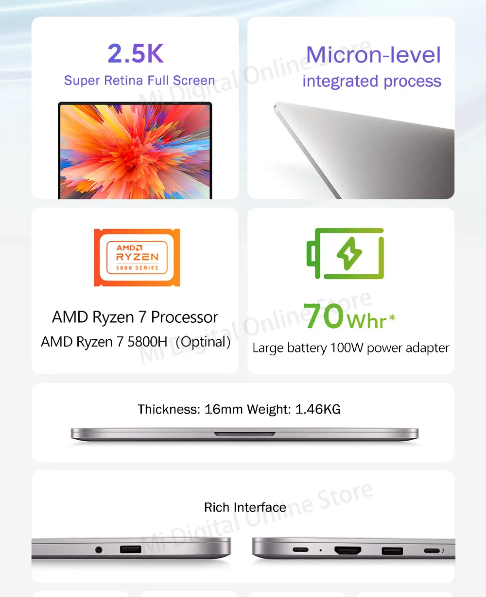 Отзывы о 【 R5R7 Super Deal】Xiao mi Red Book Pro 14 ноутбук AMD R5 5500U/R7 5700U 16G DDR4 512G/1T/2T SSD 2 5 K дюймов Mi 100% sRGB -