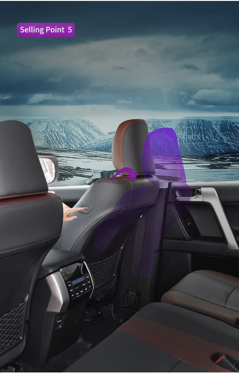 5. Особенности: водителям или Задним пассажирам удобно использовать эту кнопку, чтобы легко регулировать переднее и заднее подвижное положение и угол спинки сидения.