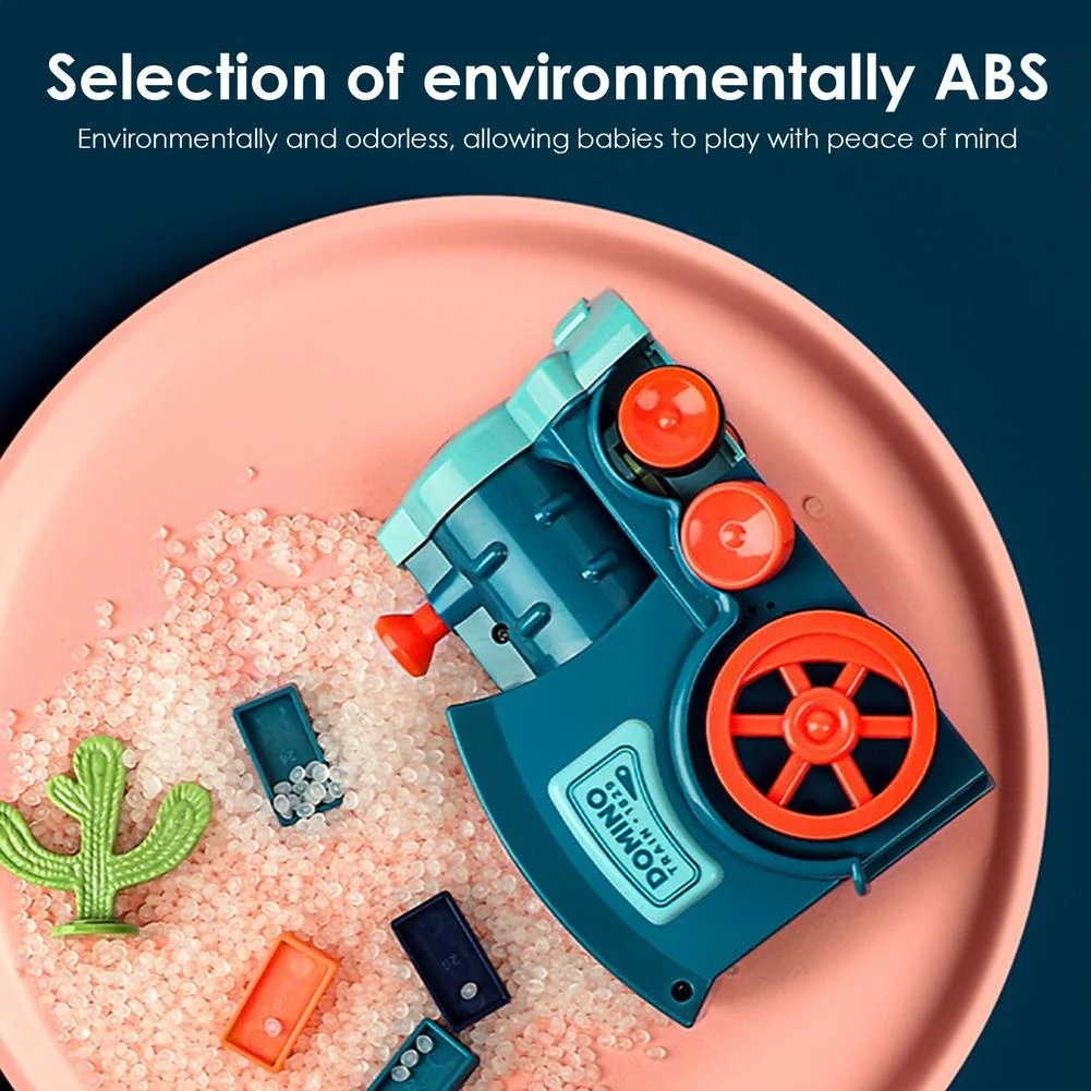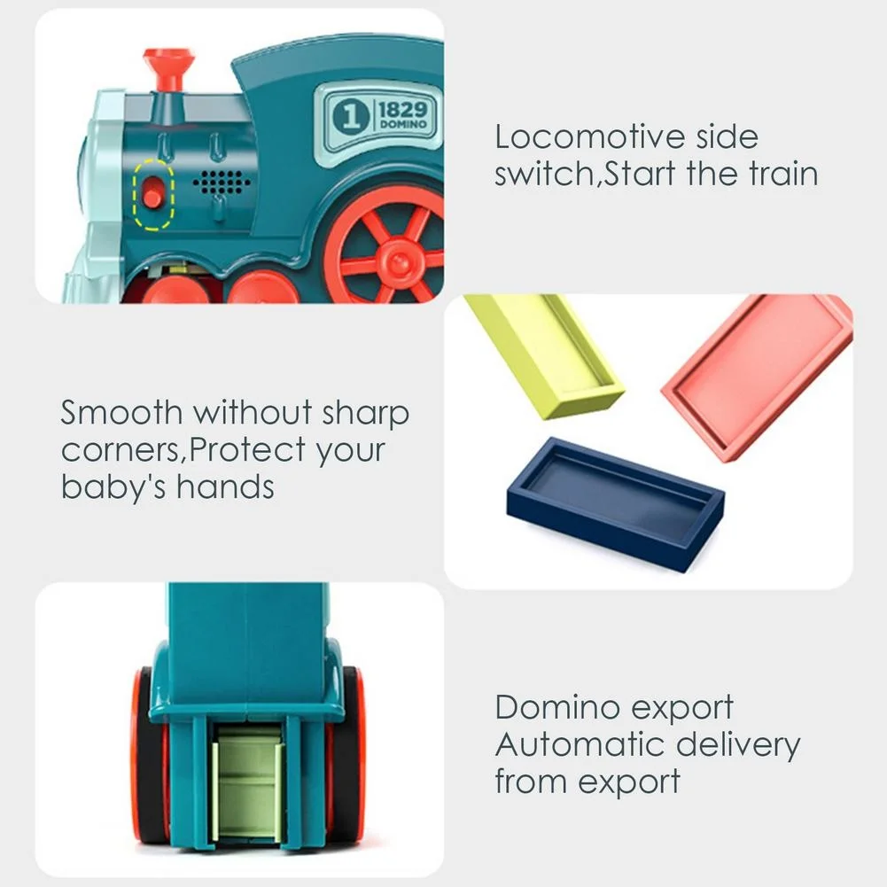 1、Educational Toy Set: Domino train building set is a kind of innovative learning toy that can cultivate children's hands-on ability, imagination, observation ability, color recognition ability and teamwork ability. In addition, parent-child interaction also plays a very important role in the parent-child relationship. Parents and children playing domino train together can also promote emotional exchanges between parents and children and create a more warm family atmosphere.2、High-Quality ABS Material: Our domino train set is made of high-quality ABS material. The edges of each domino are smooth and polished. The body of the little train has also been polished without edges and corners, so that the entire domino feels smooth and will not harm the child.
