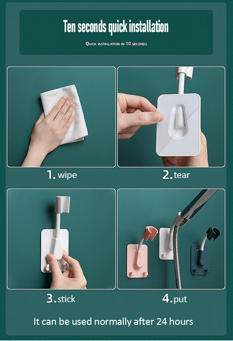 3. Настенный Держатель для душевой головки легко устанавливается, нет отверстий для сверления и имеет сильный самоклеящийся материал.