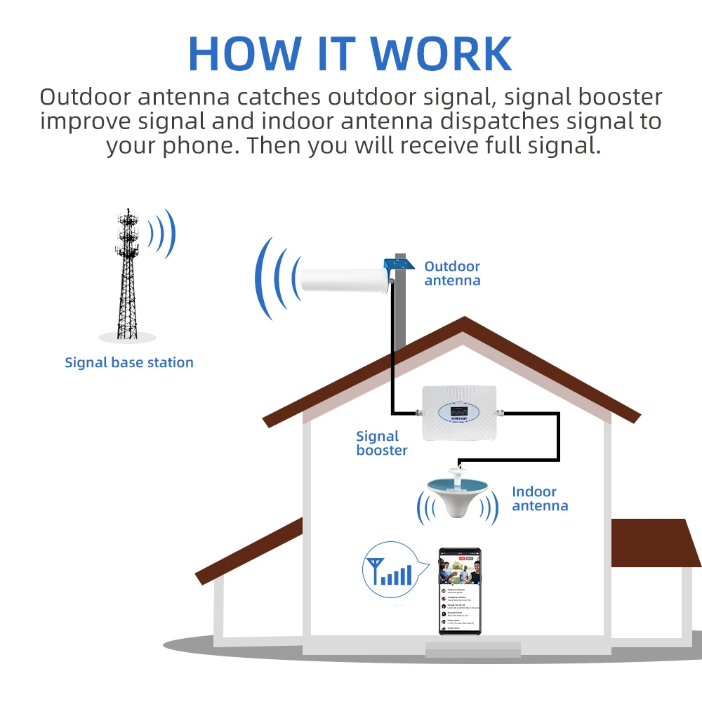 Усилитель получает сигнал, усиливает его и служит в качестве реле между вашим телефоном и ближайшей башней сотовой связи.