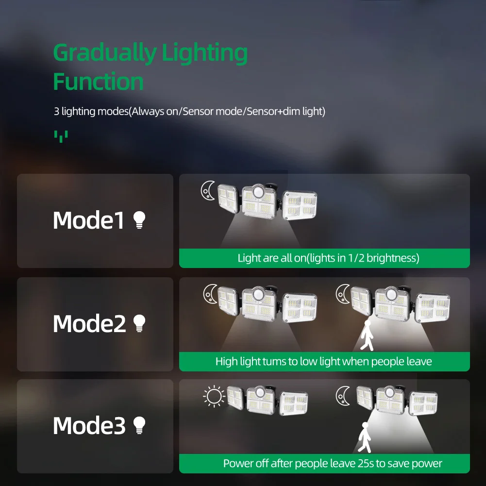 3. Светодиодный светильник с датчиком, дальность срабатывания 5 метров, угол наклона 120 градусов. IP65 водонепроницаемая, термостойкая Солнечная лампа, подходит для большинства видов погоды.