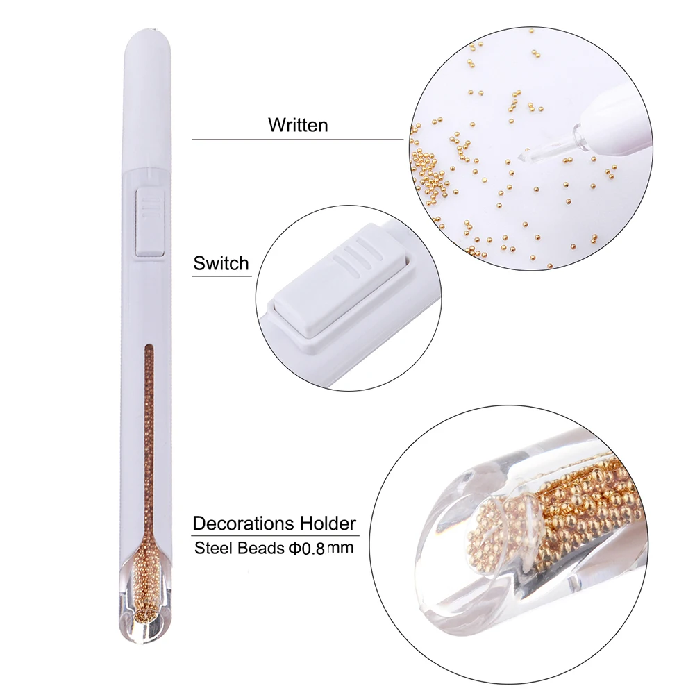 2. Полировочная ручка проста в эксплуатации, экономя время на Бисероплетение. Каждый раз, когда вы нажимаете на ручку для маникюра, металлические бусины будут появляться на ваших новых украшенных ногтях.