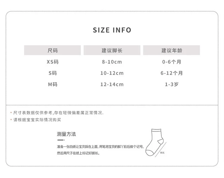 XS SСамые высокие ступни:8-10 см, подходящий возраст: 0-6 м,
