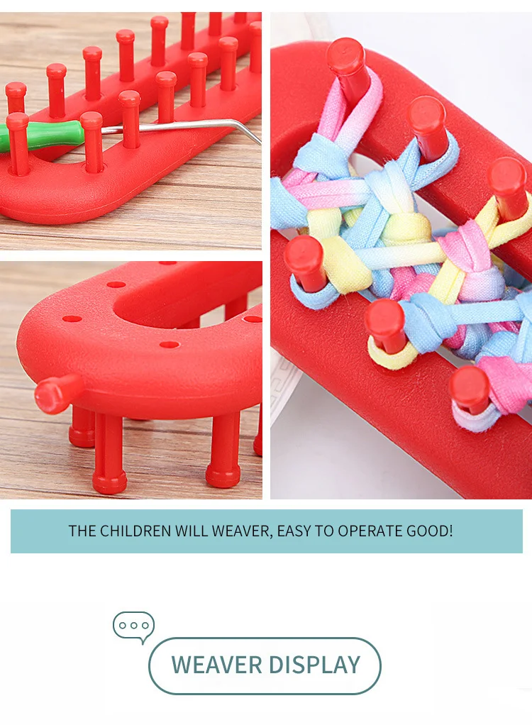 Дети быстро научатся вязать ткацкий станок, но наблюдение взрослых необходимо, чтобы избежать несчастного случая с помощью надвигающегося крючка.