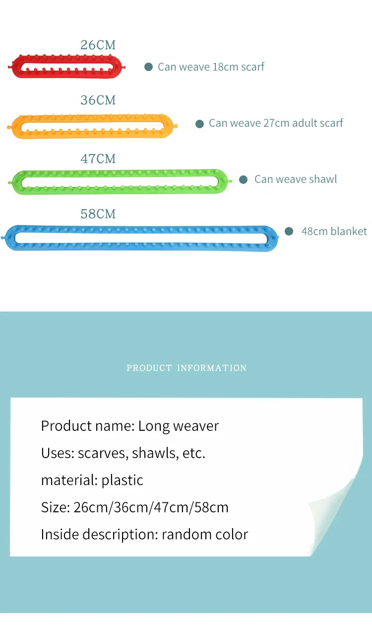 Материал: АБС-пластик; Размер: S-26cm/10,23 ", M- 36 см/14,17", L-47cm/18,5 ", XL-58cm/22,8"; Сделать шарфы, детские одеяла и многое другое! (Этот ткацкий станок представляет собой набор DIY. Возможно, вам придется самостоятельно собрать колышки.)