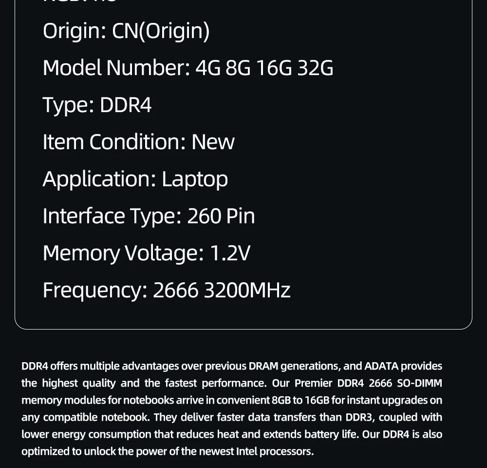 ADATA Новая память DDR3 DDR4 4 ГБ 8 ГБ 16 ГБ 32 ГБ 1600 МГц 2666 МГц 3200 МГц для лэптоп ноутбук Память Ram память 260pin
