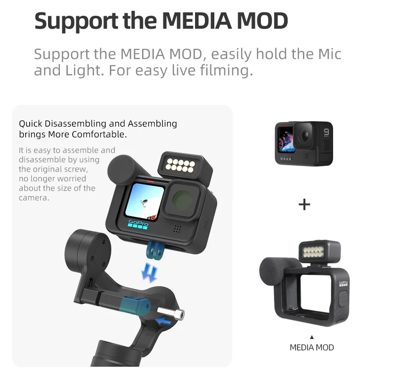 Стабилизатор для экшн-камеры: совместим с GoPro Hero 10/ 9/8/7/6/5, OSMO Action и другими большинством экшн-камер s, грузоподъемность 200 г, И легко собрать и разобрать с помощью оригинального винта, больше не беспокоясь о размере камеры.