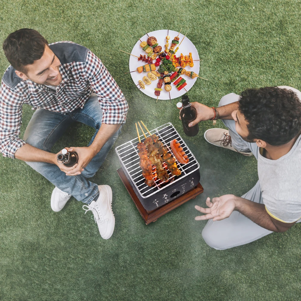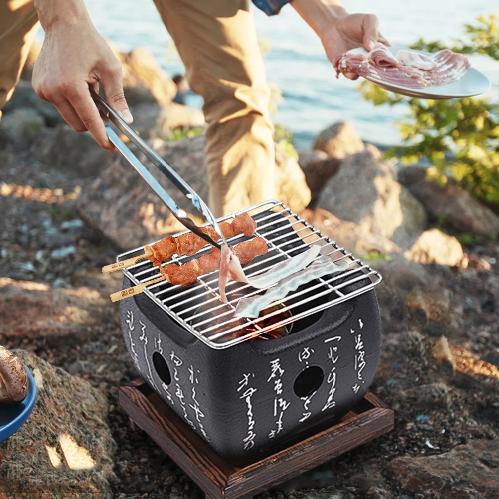 Мини-гриль для барбекю в японском стиле из нержавеющей стали с антипригарным покрытием настольная квадратная древесно-Угольная плита лоток для барбекю гриль для пикника на открытом воздухе кемпинг кухня инструменты для мяса
