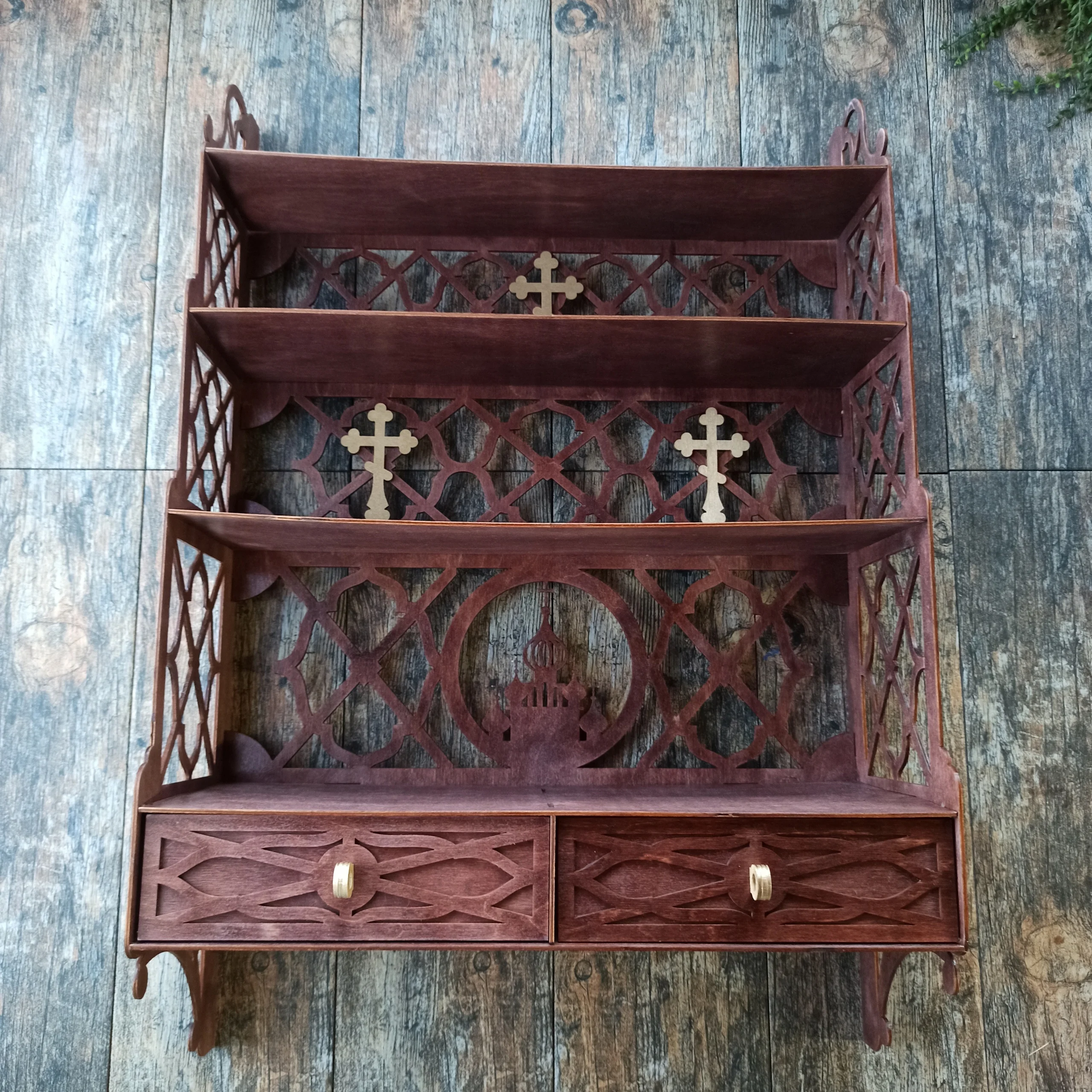Отзывы о Полка для икон прямая на 4 руса 2 ящика полочка Божница Домашний иконостас christian icon