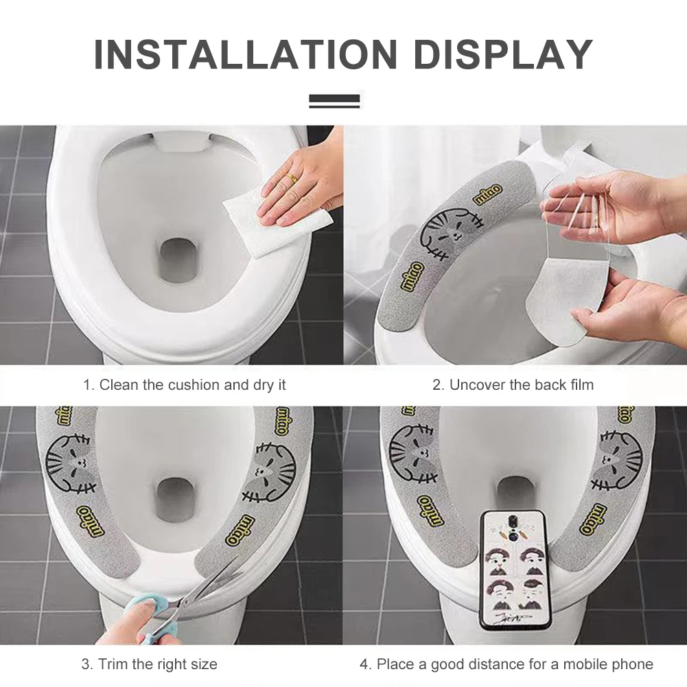 * 2. Протектор сиденья унитаза может быть прочно приклеен к поверхности сиденья унитаза благодаря многоразовому клеящему слою, без остатка не остается при удалении, супер практично. Пожалуйста, держите поверхность унитаза чистой и сухой перед использованием