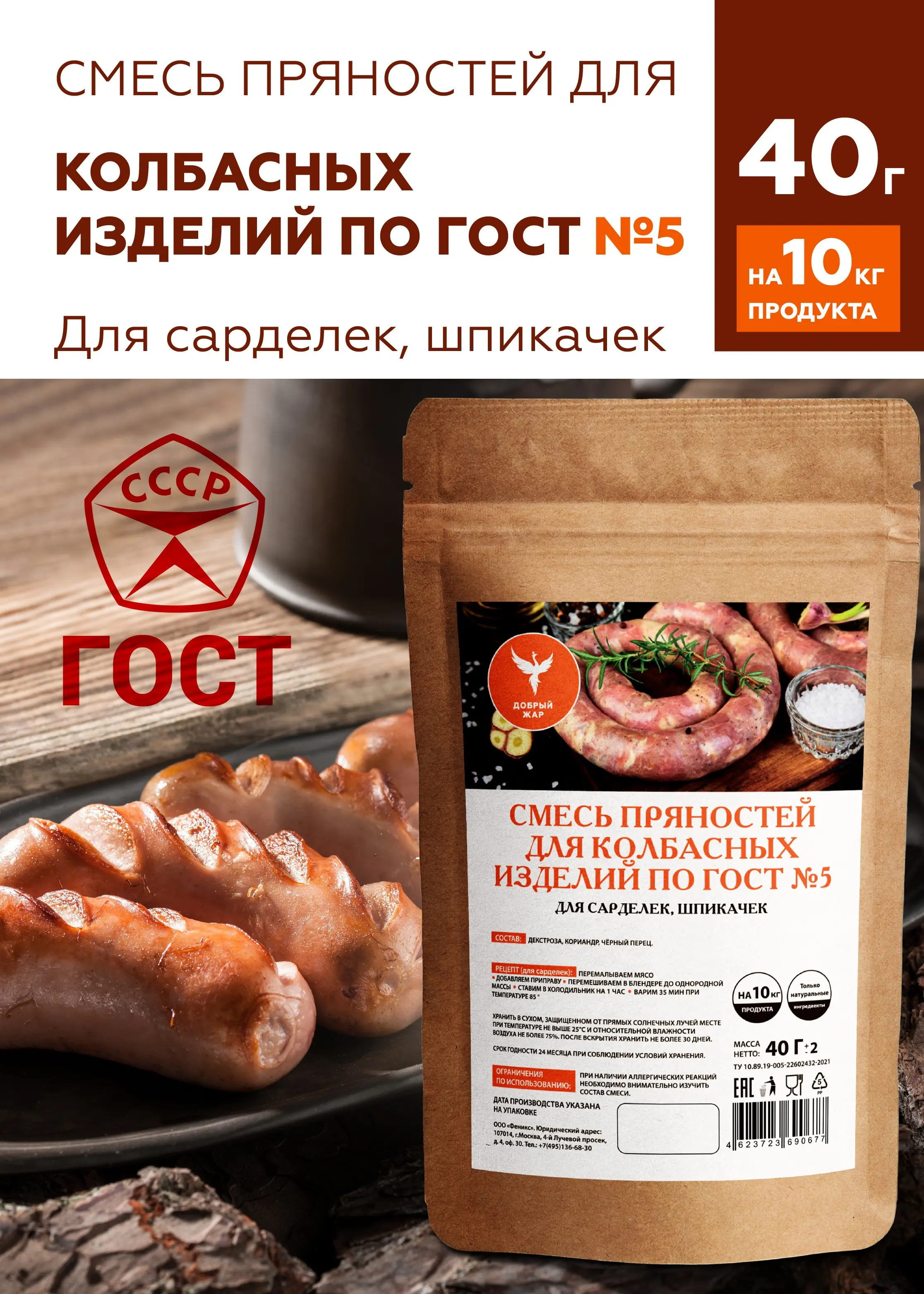 Смесь пряностей для колбасных изделий по ГОСТ №5 - классика, проверенная временем. Данный набор специй входит в 7 общепринятых наборов, утверждённых ещё в 70-е годы в СССР. Каждый стандарт актуален до сих пор. Пряность и острота кориандра и чёрного перца наполнит любое мясное изделие незабываемым ароматом и вкусом. Смесь применяется для приготовления сарделек, варёных и полукопчёных колбас, шпикачек. Состав: декстроза, кориандр, чёрный перец. Для колбасы приправа / приправа для колбасы краковская / приправа для колбасок / специи для колбасы краковская / приправы и специи для колбас / специи для домашней колбасы / приправы для домашней колбасы