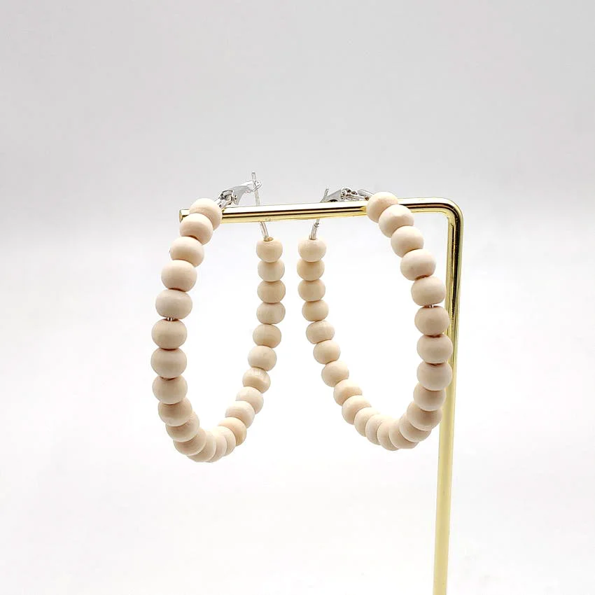 Отзывы о Женские деревянные серьги-кольца с бусинами коричневые большие из натурального