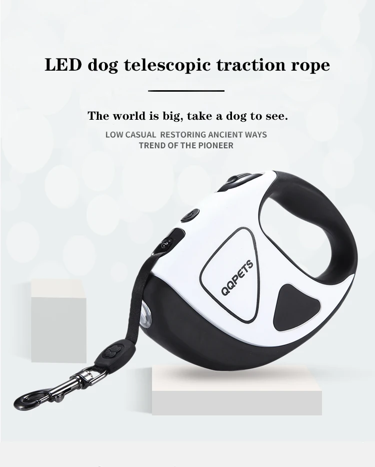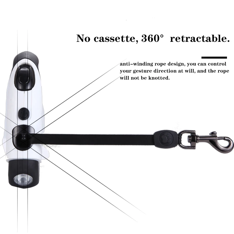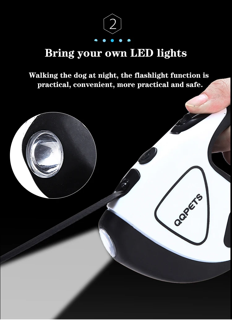 Характеристики: прорезиненная ручка, более удобный светодиодный фонарик (с использованием двух аккумуляторов 7 #), более удобно ходить по собаке ночью, 360 градусов с защитой от намотки. Без кассеты.