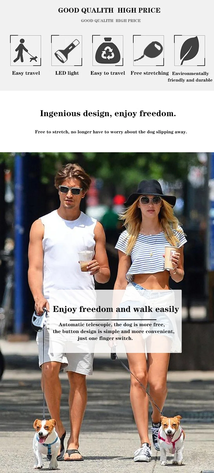 Новый поводок для собак 2 в 1, нейлоновая веревка, автоматическая телескопическая Тяговая веревка с светодиодный фонариком, маленький средний и большой Поводок для собак, втягивающий поводок для домашних животных, товары для немецкой овчарки