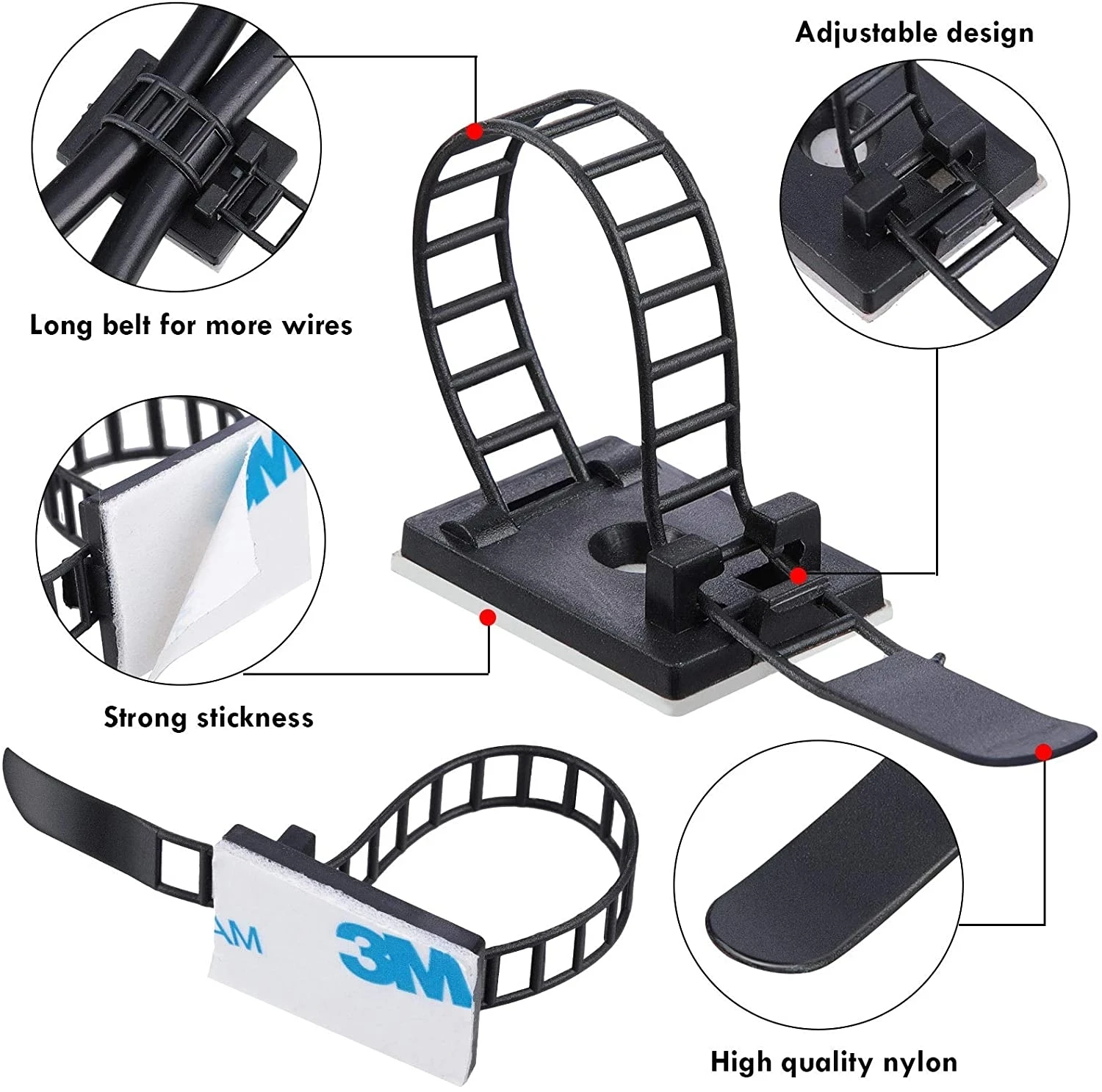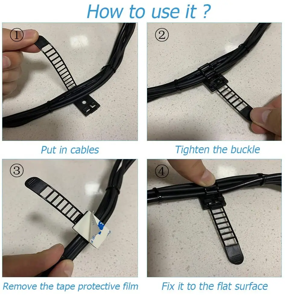 Отзывы о 5/10/20PCS Adhesive Cable Management Clips Adjustable Strap Ties Wire Clamps USB Organizer For Network Power Cord Car Home - купить по