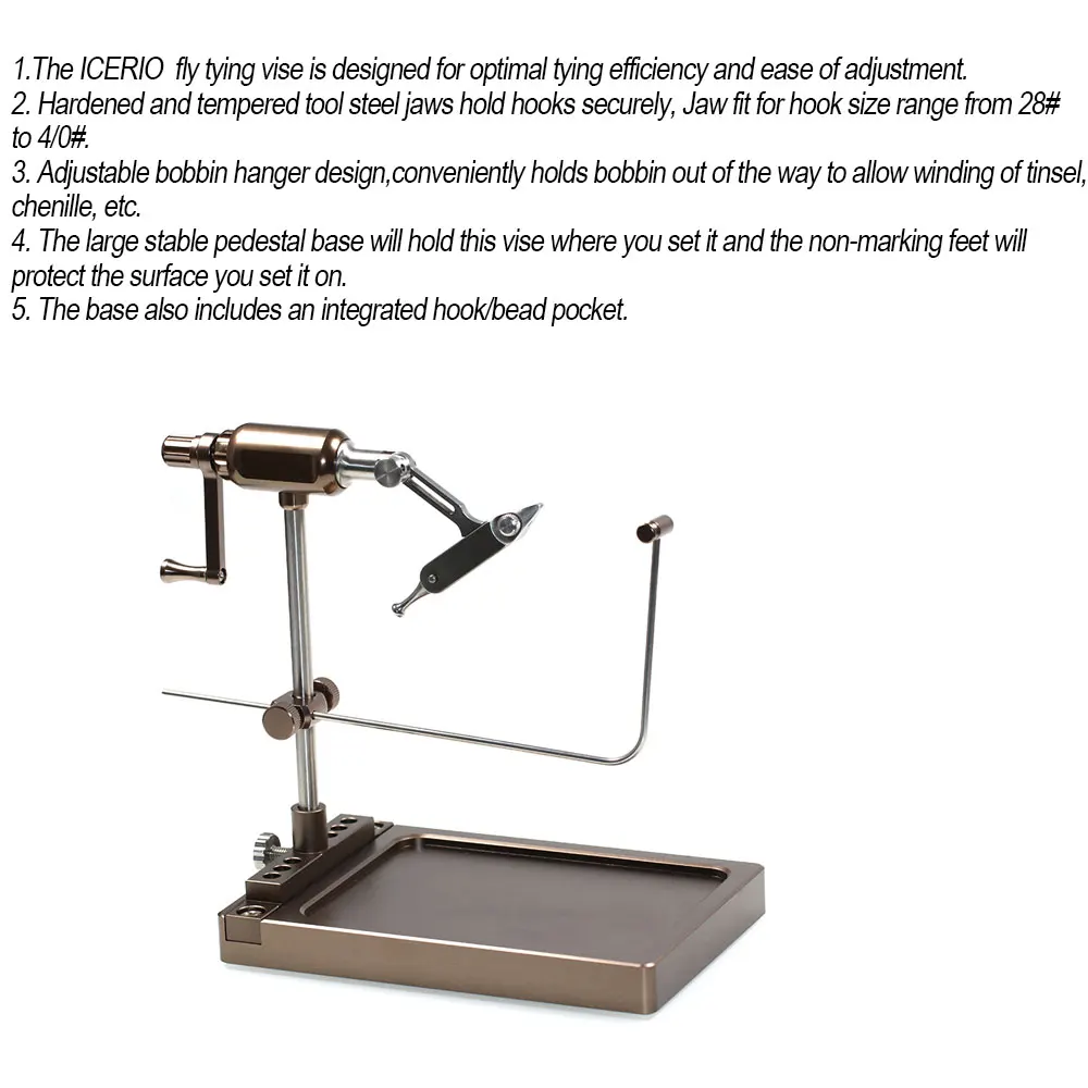 1. ICERIO fly locking vise предназначен для оптимальной эффективности завязывания и легкости регулировки.