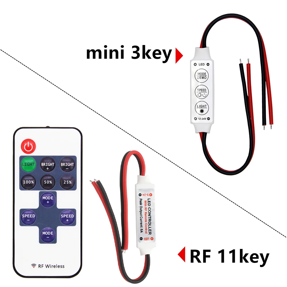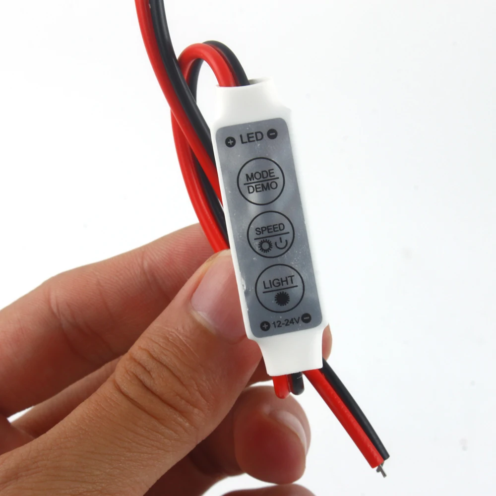 Этот продукт имеет мощные функции и небольшой размер, он представляет несколько динамических моделей, приносит новое приложение для украшения одного цвета светодиодный. Кроме того, он может использоваться как светодиодный диммер. Вы можете легко изменить динамический режим, скорость и яркость, нажав 3 клавиши на тонком корпусе. Он также имеет функцию автоматического запоминания.