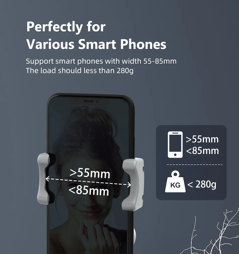 Поддержка смартфонов шириной 55-85 мм нагрузка должна быть меньше 280 г