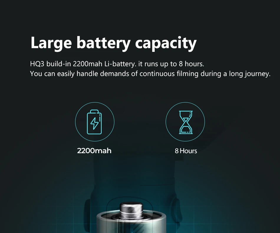 HQ3 встроенный литий-ионный аккумулятор емкостью 2200 мАч. Работает до 8 часов.