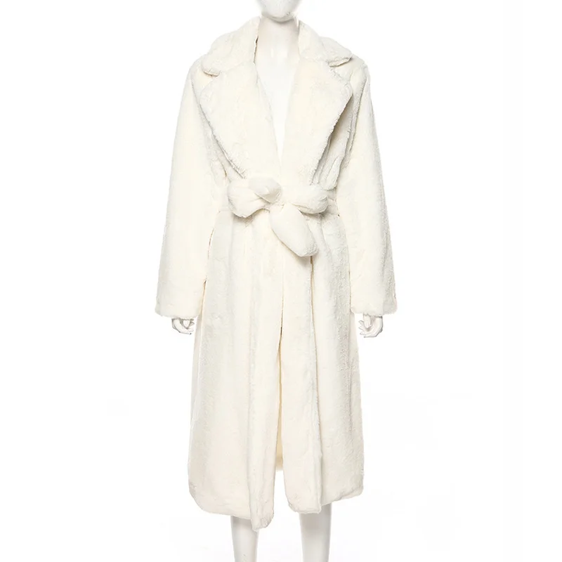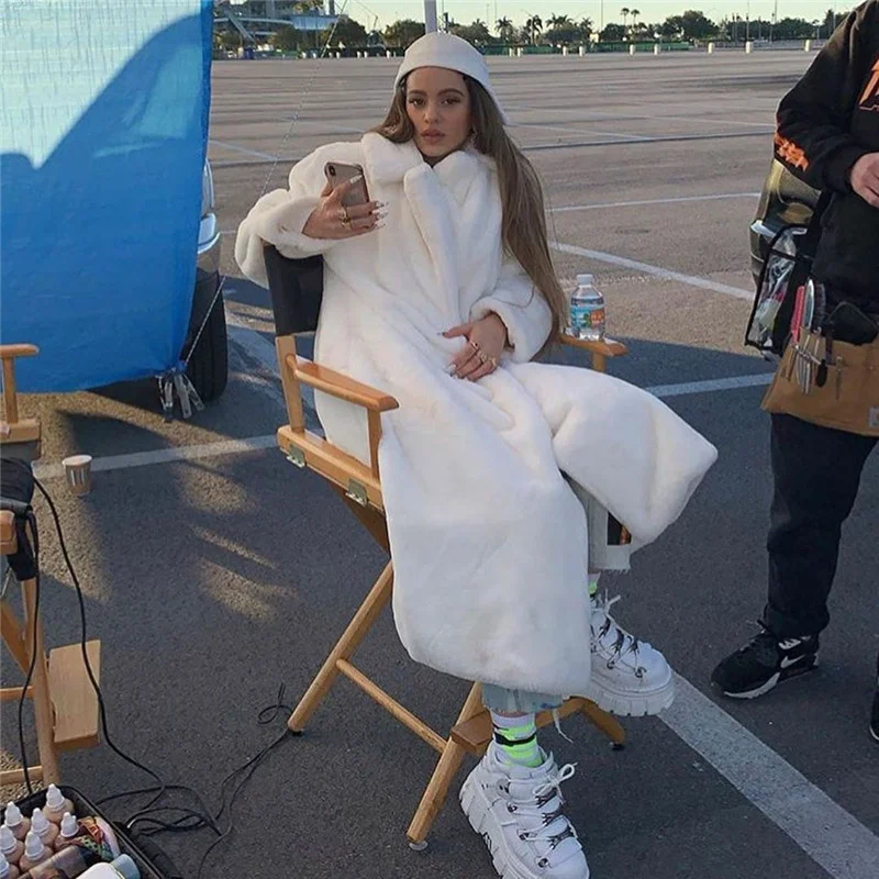 Отзывы о Женское пальто из искусственного меха длинное белое пушистое большого размера с