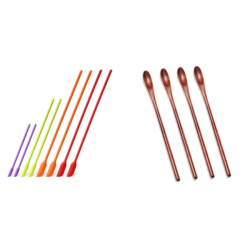 Идеальный кухонный аксессуар: деревянные ложки для смешивания незаменимы для вашей кухни, которые можно применять не только для приготовления кофе, но и для смешивания меда, чая, крема, варенья и других жидкостей; Ложка для смешивания имеет длинную ручку и может погружаться глубоко в банку определенной высоты, и избегайте того, чтобы ложка была слишком короткой, чтобы достичь нижней части банки