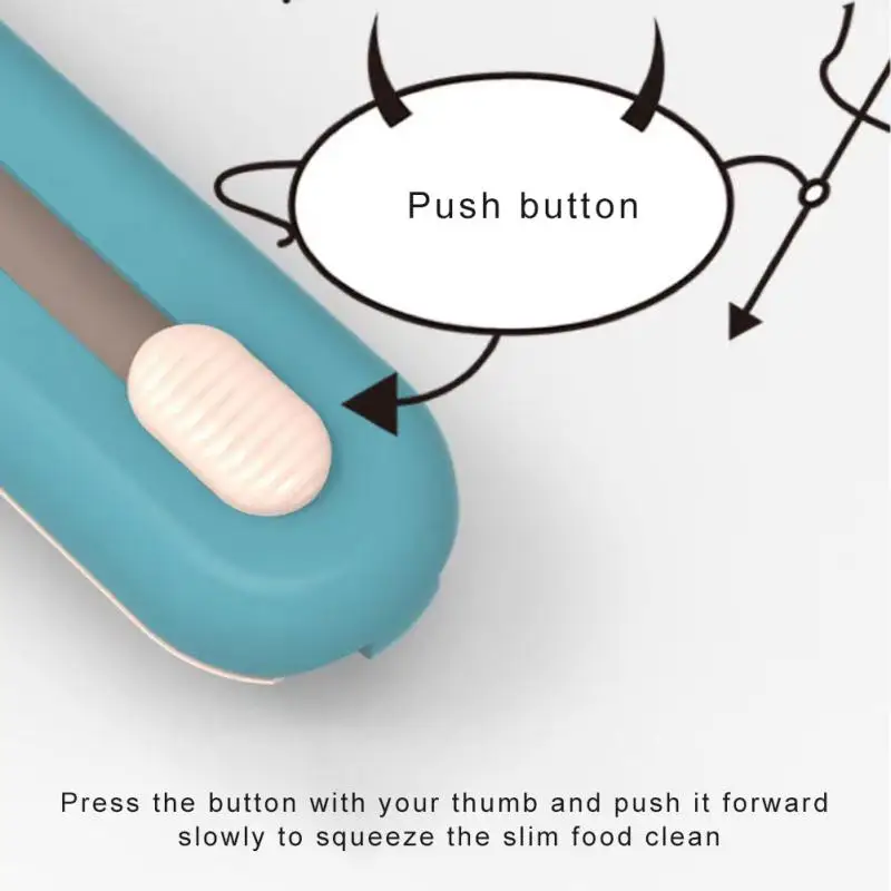 5: после закрытия ложки для кормления, нажмите кнопку на ложке для кормления, чтобы выжать дополнительную еду в пищевой палке на поверхность ложки для кормления