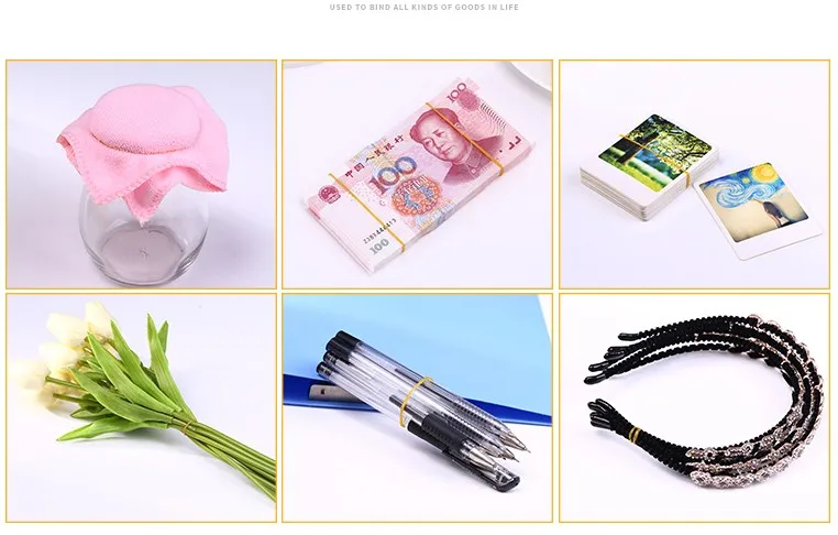 Бандажные изделия вокруг вашего дома или офиса, бандажные наличные или квитанции, сделать резиновый шарик, использовать их в качестве галстука для волос, для ремесленных проектов, как знак книги, оберните свободные провода, связывая карандаши, завяжите деньги или даже Используйте их в качестве браслета.
