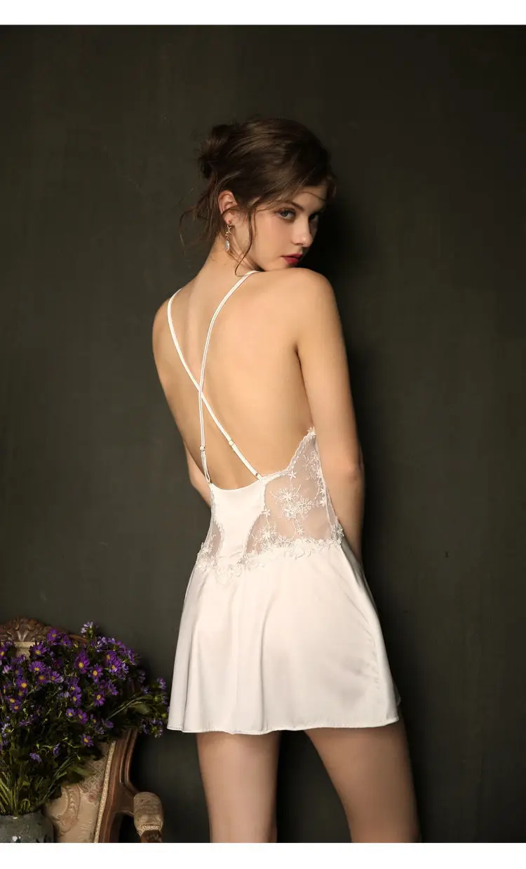 Брендовая Новая женская ночная рубашка, роскошная ночная рубашка из искусственного шелка с кружевным ремешком, Дамская Сексуальная Ночная сорочка на бретельках с открытой спиной, женская одежда для сна