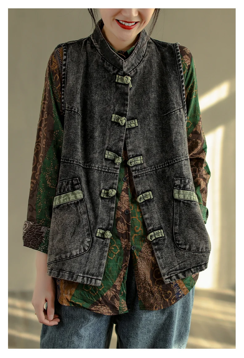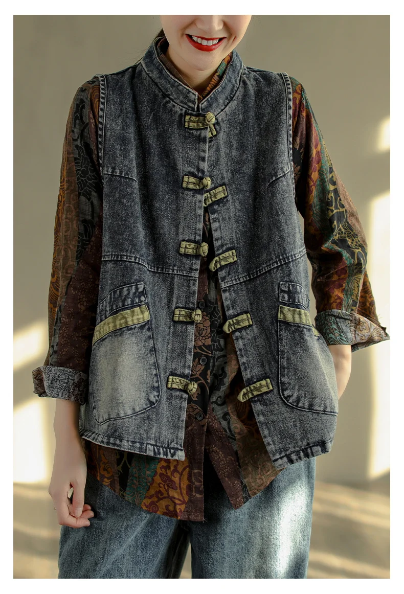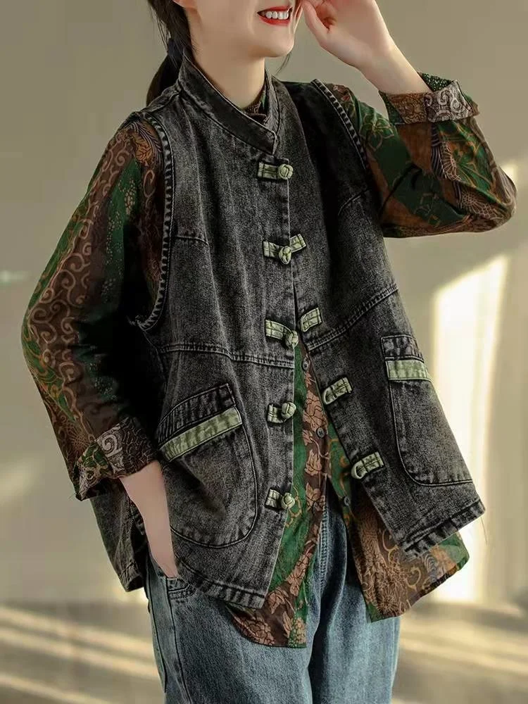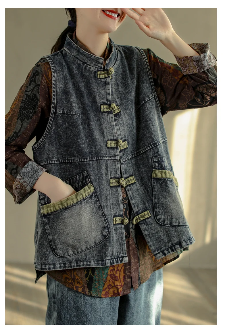 Свободные джинсовые куртки-жилеты в стиле панк