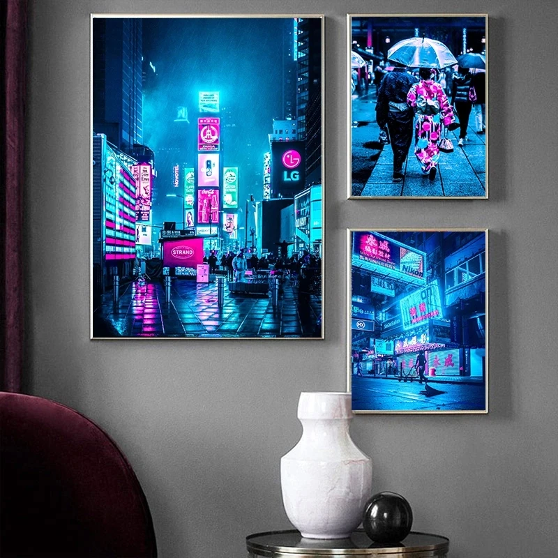 Отзывы о Модульная картина Hd Печать неоновая Ночная городская уличная Живопись Домашний